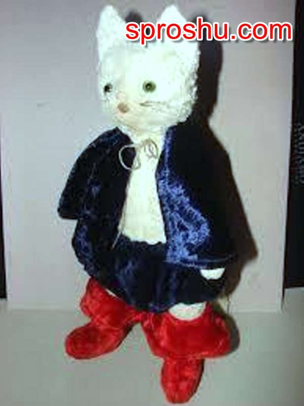 Но когда я был маленький, то у меня была такая любимая игрушка. Это был плюшевый белый кот, который мне подарил дедушка, он сам с ним играл в детстве. Это был старый кот, в синих штанах и в синем плаще и шляпе на одном ухе. На нем были красные сапоги. Глаза у кота были зеленые стеклянные, а также длинные усы. Я назвал его Пират.