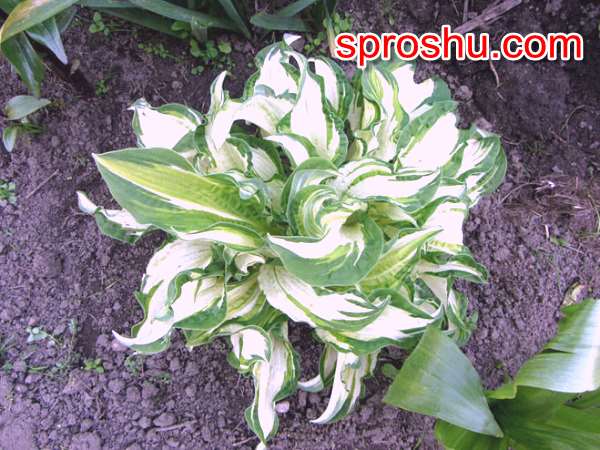 Хоста "Аллеган Фог" совсем невысокая, примерно сорок сантиметров достигает в высоту уже взрослое растение, имеющее штрихованный белый центр листа с волнистыми краешками. Со временем, лист становится более подкрученным, а проявлять себя растение начинает после посадки где-то на третий год, раскрывая свою красоту в полной мере.