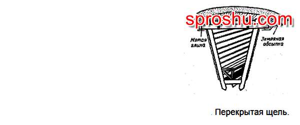 Самым простейшим таким укрытием является щель, представляющую узкую траншею глубиной до 2-х метров и шириной вверху 1 -1.2 метра, а внизу 0.8 метра.