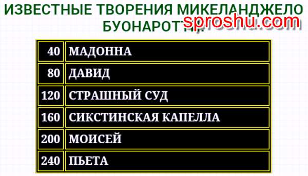 100 к 1.Известные творения Микеланджело Буонаротти.(Интеракт ивная игра).