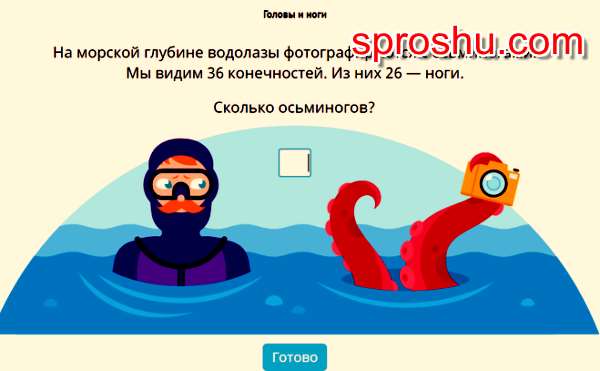 Здесь надо узнать сколько под водой было водолазов и со сколькими осьминогами они фотографировались.