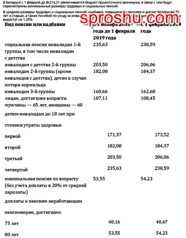 На сколько повысят трудовые и социальные пенсии 1 февраля 2019 в Беларуси?