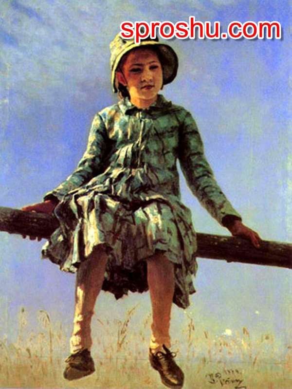На этой картине, И.Е. Репин изобразил свою двенадцатилетнюю дочь Веру, сидящую на перекладине в зелёном платье и всем своим видом, напоминающей стрекозу. Как известно, знаменитый художник, на некоторых картинах изображал своих родных и близких.