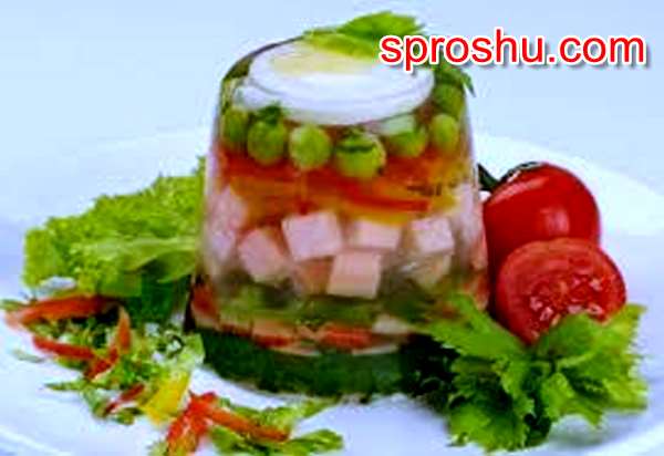 Но если уж прям захотелось что-то приготовить из холодца. Можно просто красиво его себе подать. Взять какую-то красивую формочку добавить туда холодца и из нее красиво его выложить на тарелку. А потом украсить тарелку или салатом или овощами.