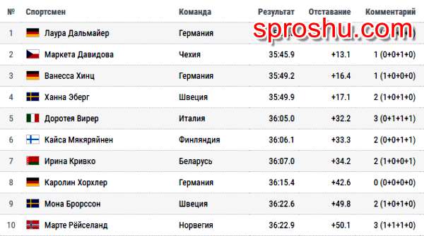 Биатлон. Антхольц 27. 01. 19. Женский масс-старт. Какие результаты гонки?