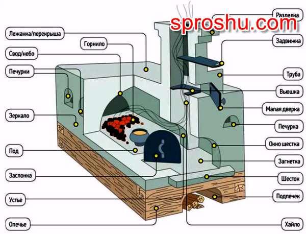Как называются элементы русской печи?