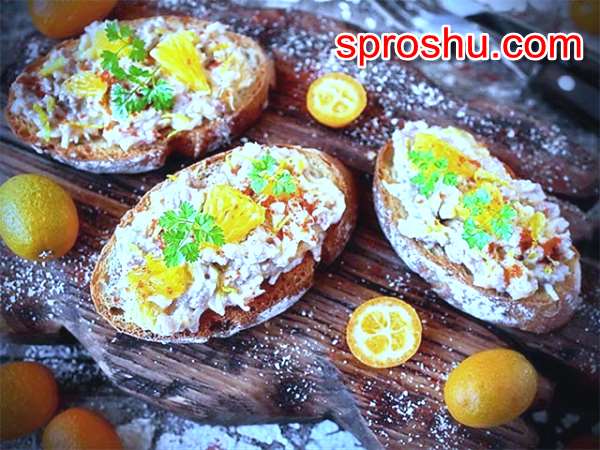 Очень полезны и вкусны бутерброды из печени трески , яиц и апельсина.Печень размять вилкой, яйца мелко порезать, апельсины очистить и измельчить.Все смешать и намазать на поджаренный хлеб. Украсить зеленью