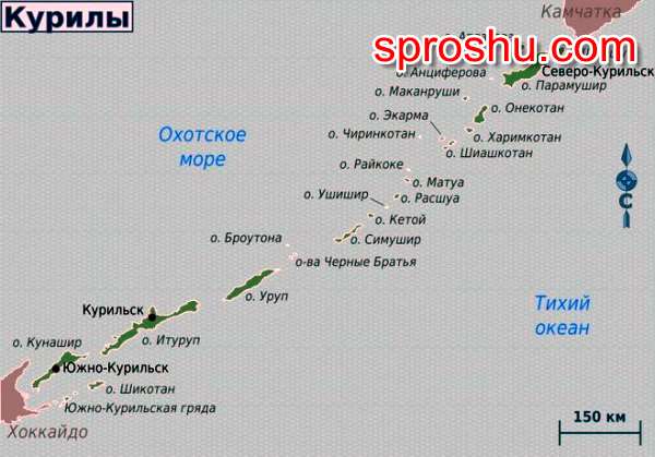 Япония оспаривает принадлежность южных островов: Итурупа, Шикотана, Кунашира.