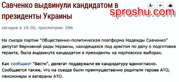 Так что не будет Савченко участвовать в президентских выборах и вообще, судьба её мне видится очень печальной в Украине, о чём я не раз писала в ответах, хотя моё отношение к ней совсем не положительное, совсем наоборот.