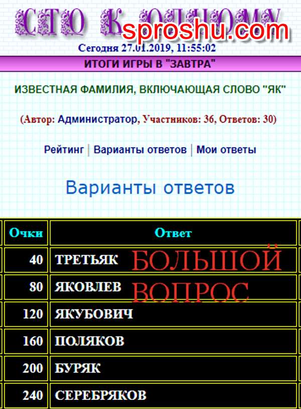 100 к 1. Известная фамилия, включающая слово «ЯК», какие ответы?