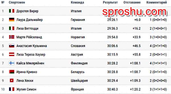Биатлон КМ. Антхольц 26.01.19. Гонка преследования. Женщ. Какие результаты?