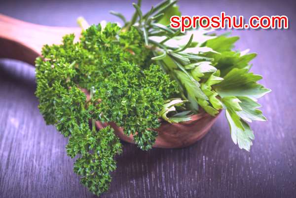 На третьем месте идет петрушка, в нем есть холин, селен, фосфор и натрий, а также магний и калий, петрушка нормализует артериальное давление, укрепляет десны, помогает бороться с гастритом, она является отличным средством, которое помогает при заболеваниях почек.