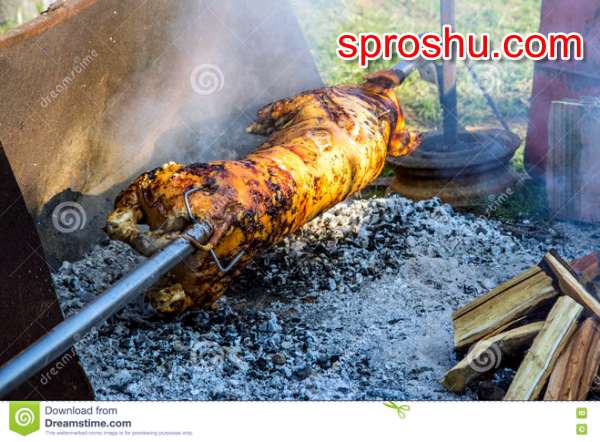 Не так -то просто запечь на вертеле целого кабана. Да и мало кто за это возьмется, не имея специального устройства для поворота туши над углями.