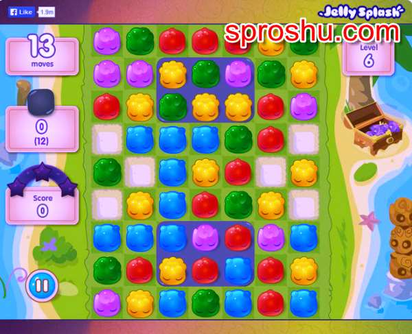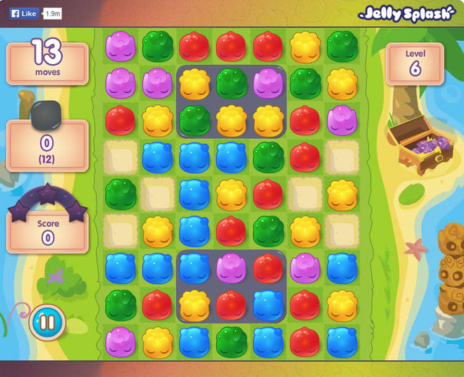 Моя любимая игра в Фейсбуке Jelly Splash (Джили Сплеш). В нее можно играть как в Фейсбуке, так и через приложение на телефоне. Но если к этому приложению у тебя подтянут Фейсбук, то в игре можно получить больше "плюшек". На мой взгляд, это очень залипательная игра.