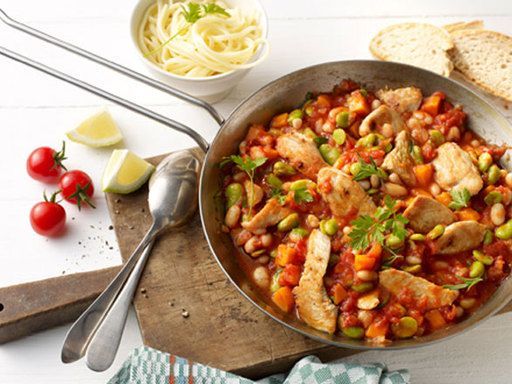 Можно пожарить курицу вместе с фасолью и томатами либо томатным соусом.