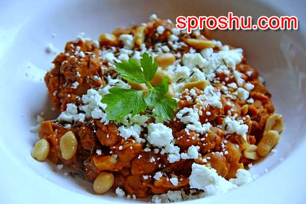 Если захотелось фасолевого завтрака можно просто потушить фасоль с мясом и посыпать сверху сыром.