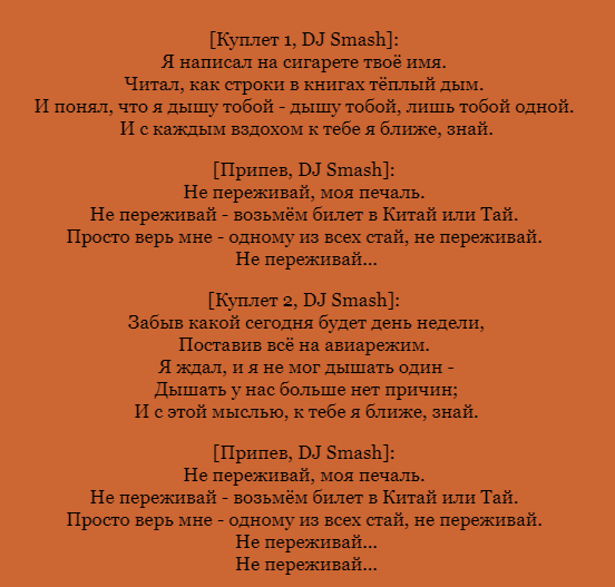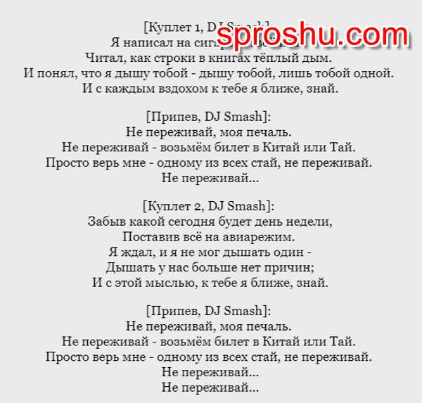 Текст композиции "Не переживай" смотрим прямо здесь, на проекте "Большой вопрос".