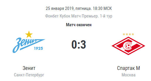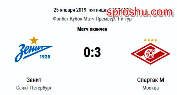 Кубок Матч Премьер, 25.01.19, Зенит - Спартак. Как сыграли, какой счет?