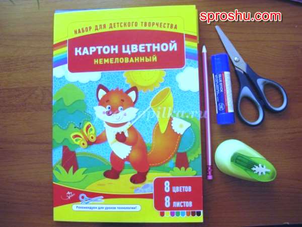 Берём один лист цветной бумаги, он у нас будет основа. Цвет любой.