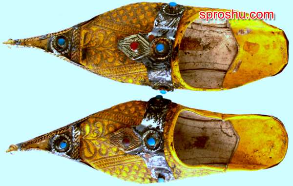 Обувь с загнутыми носками без задников как у Хоттабыча или маленького Мука называлась бабуши.Такую обувь носили в Марокко.Это легкая и удобная обувь. В современной обуви многое заимствовано от них.