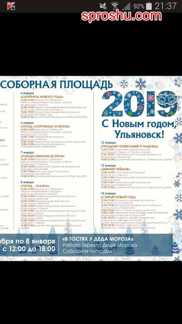 Встретить Новый 2019 год в Ульяновске с комфортом и вкусом предлагаюь следующие завадения: рестораны Шпинат, ГрафинЪ, Ереван, ресторан -клуб Феникс, а также Русский Самовар. Также гостеприимно открыты двери загородных туристических баз.