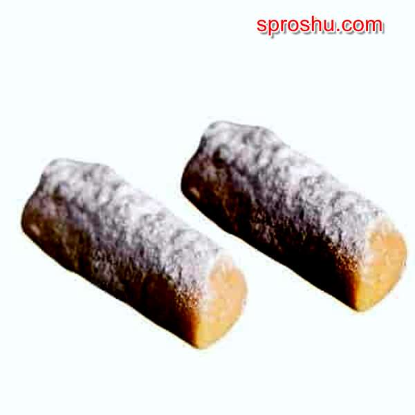 Готовое тесто раскатывается на печенье, традиционно - в форме небольших батончиков. Печенье выпекается стандартно, на смазанном противне в духовке при температуре 180 градусов в течение 20-ти минут. Готовое печенье надо посыпать пудрой, пока не остыло.