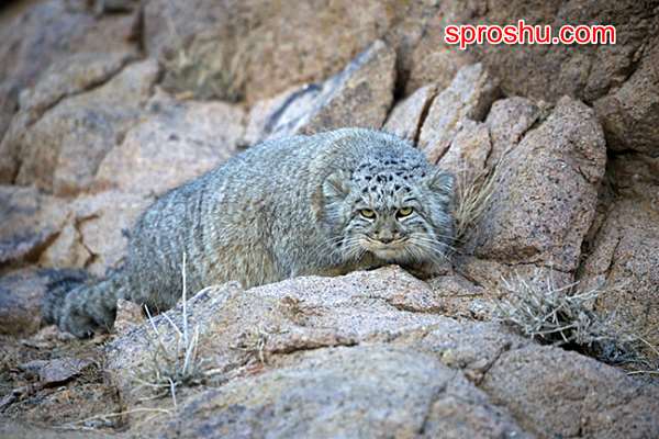 Манул, или палласов кот (по имени учёного-биолога Петра Палласа, описавшего вид) - самая маленькая дикая кошка в России: длина его - около полуметра, длина хвоста - до 35 сантиметров, вес - до 5 килограммов. У него густая и пушистая шерсть, массивные лапы и плотное тело, приплюснутые уши.