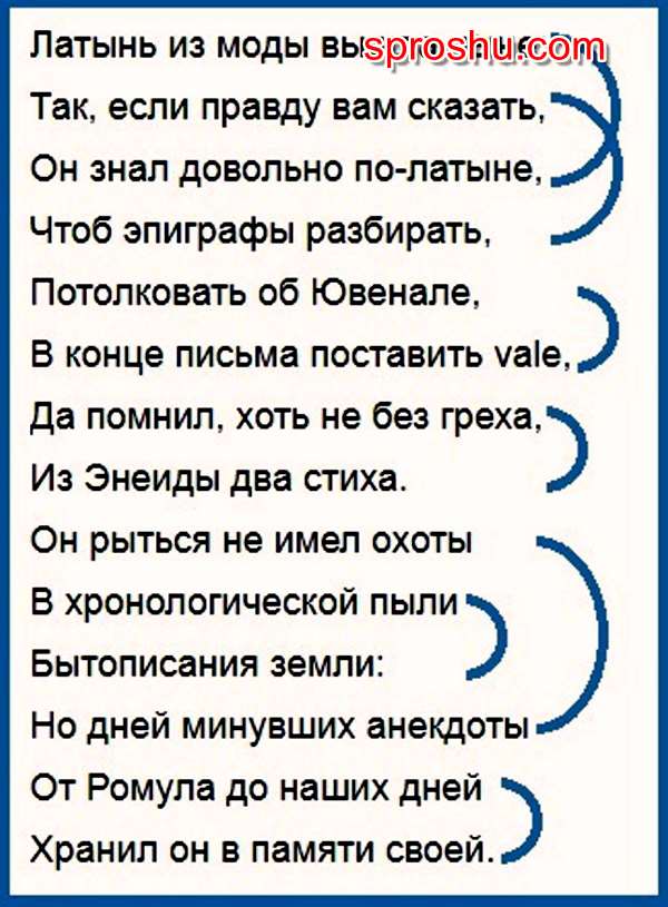 Александр Сергеевич в своей четырнадцатистопной строфе соединил строфическое строение английского и итальянского сонетов, сделал всё это по-своему и получил то, что мы с вами читаем. Согласитесь, читается достаточно легко и непринуждённо, хотя в одной строфе столько всего намешано. Здесь мы видим одновременное присутствие парных, перекрёстных и опоясывающих рифм. Только гений мог до такого додуматься.