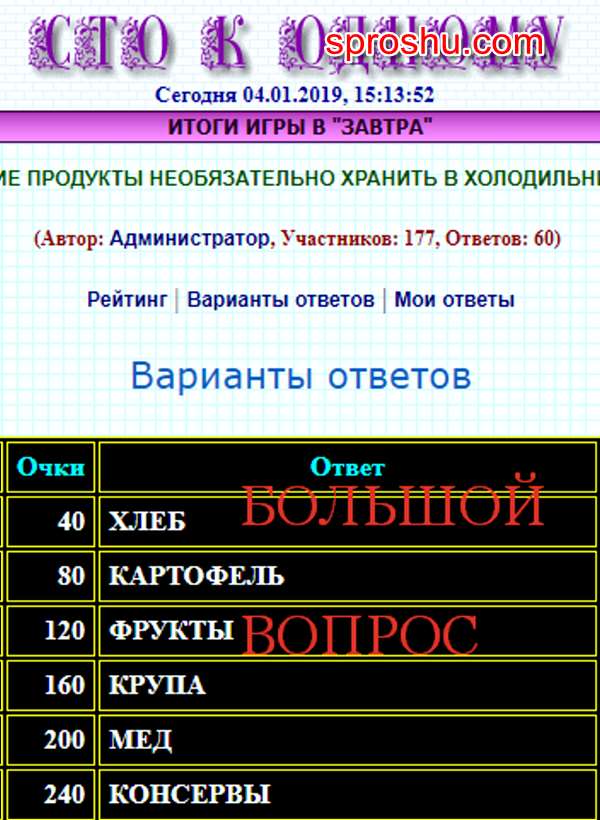 Вот такие ответы оказались верными в игре, хотя предлагались и такие варианты:
