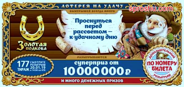 Золотая подкова 177 тираж. Розыгрыш смотрите 20 января 2019 года.
