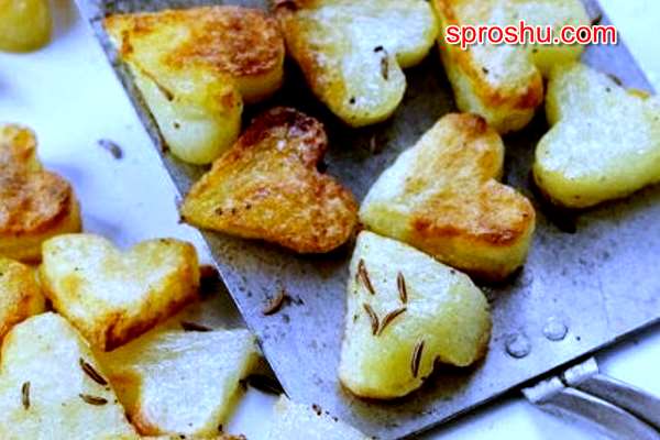 Например можно из той же картошки нарезать сердец. Но лучше не жарить а запечь. Так больше шансов сохранить красивую форму.