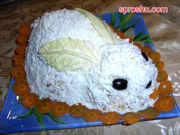 Как приготовить салат в виде зайца/кролика на Новый год и оформить его?