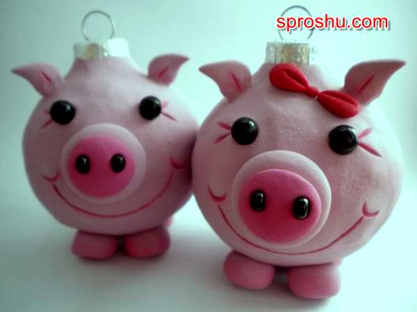 Есть еще множество идей. как сделать елочную игрушку-поросенка из елочного шарика. Можно нарисовать свинку на любом шарике акрирловыми красками.