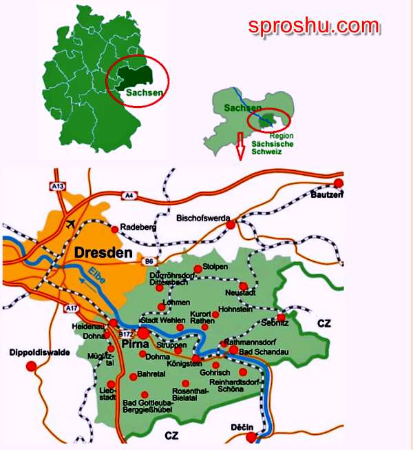 На этой карте Германии показано местонахождение Саксонской Швейцарии.