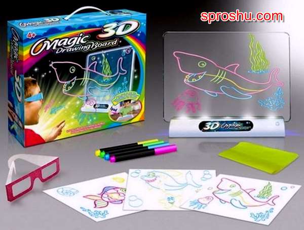 Рисуй светом - похожа на первую доску, только нужно рисовать светом и наблюдать за процессом рисования - картинка светится после нарисования 5 минут.