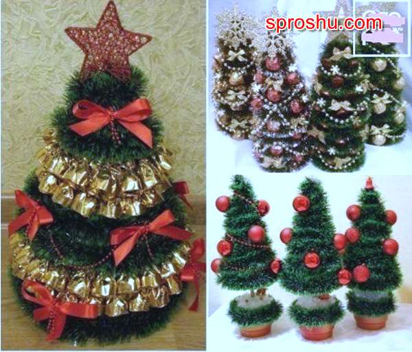 Ёлка из мишуры в виде поделки. Как сделать ёлку из мишуры на стол, на окно?