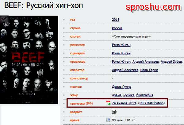 До какого числа в кино будет идти фильм BEEF: Русский хип-хоп 2019?