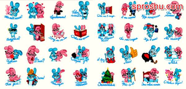 Всего в наборе стикеров с Кроликами Дюрекс 32 картинки. Присылали их частями.