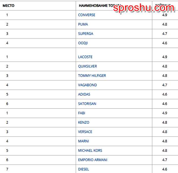 Посмотреть на все кеды из таблицы можно по этой ссылке.