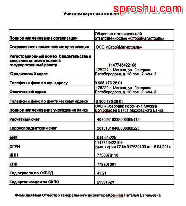 Раньше это был не обязательный документ, но с того самого момента как стала везде вводиться цифра, эта карточка стала обязательной. И если у вас ее нет. Гапример, предприятие старое, образовалось, когда такие документы еще не требовали, тогда вам надо в Учетной политике предприятия отразить отдельным пунктом, что принятая у вас в организации Учетная карточка клиента выглядит так. А выглядеть по-другому она не может, т.к. это утвержденный образец. Но просто в вашем образце все данные будут ваши. И обычно ее теперь пересылают в другую организацию, когда там просят "реквизиты". Вот это они и есть в полном виде, а не только Банковский счет.