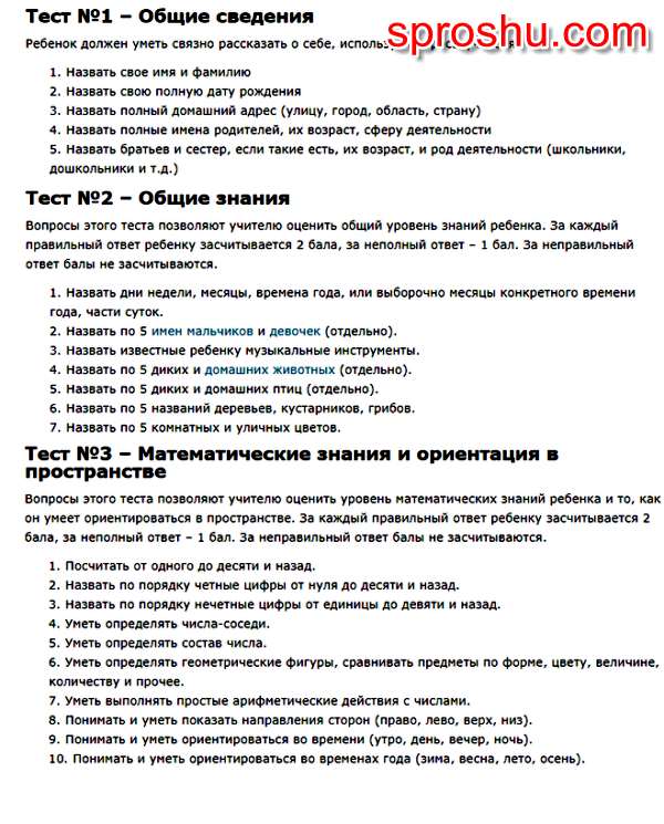 Какие вопросы задают ребенку при поступлении в 1 класс?