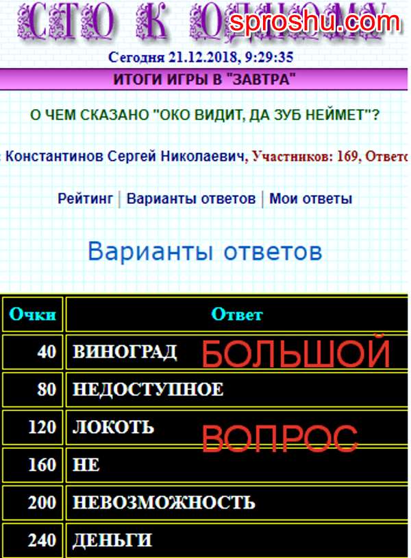 100 к 1 О чем сказано око видит, да зуб неймет (интерактивная игра)?