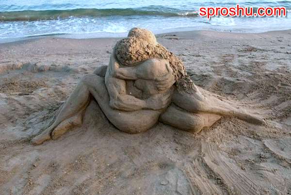 А еще последний вариант. Это тип скульптуры, которая стала популярной, несмотря на всю недолговечность песка.