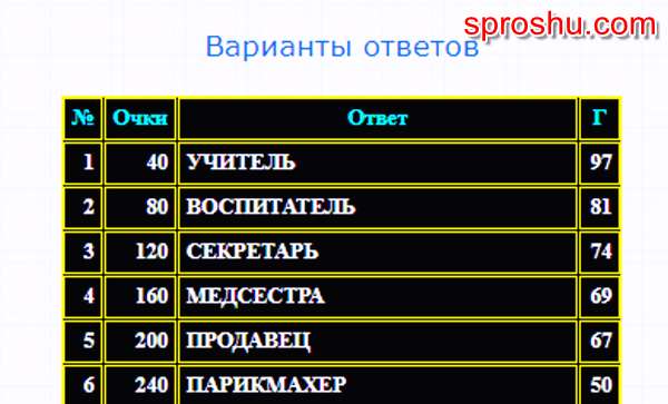 - Секретарь. Этот ответ добавит игроку 120 баллов.