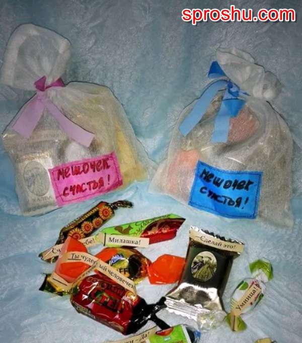 Мешочек счастья с конфетами и надписями как сделать и оформить?