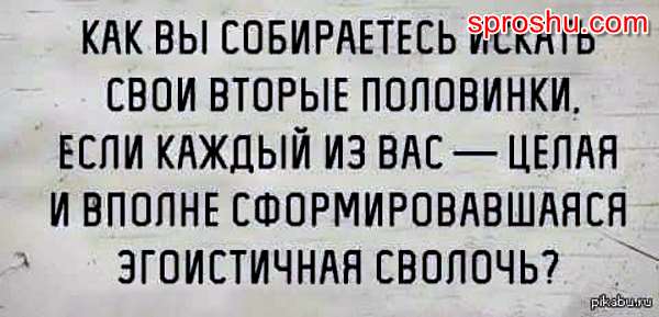 Ну если вы" эгоистичная сволочь",то жену вам лучше не заводить.Счастливой она с вами не будет,А жить рядом с несчастным человеком....Уж лучше с кошками. А вот зачем люди ищут свою вторую половину?Явно не для того чтобы было кому борщ сготовить.Хорошо обеспеченные люди ,имеющие целый штат прислуги,имеющие возможность потрахаться с той же прислугой,и все равно ищут вторую половину.Не жену,для продолжения рода,а свою вторую половину.Значит без нее им плохо.Вам хорошо?Значит вы просто морально до этого не созрели.Не торопитесь,пройдет время,и возможно вы тоже начнете ее искать.