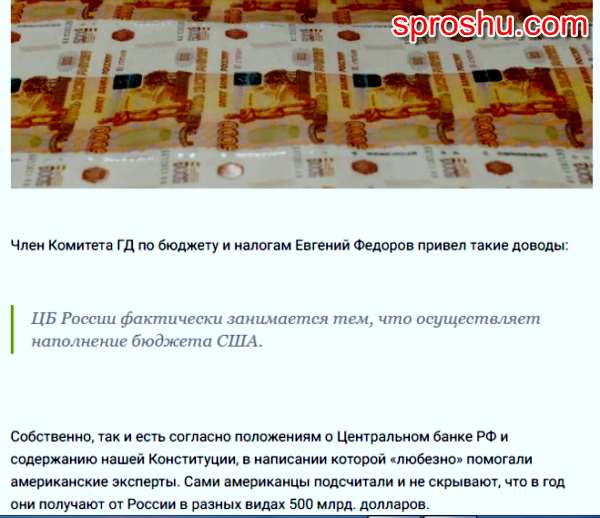 Зачем РФ не смотря на бедность укрепляет экономику США? Ваше мнение?