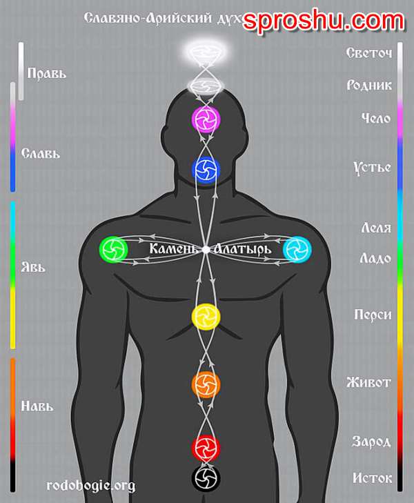 Хотелось отметить, что некоторые названия частей тела тесно связаны с чакровой (вихревой) системой древних славян, состоящей из 9 основных (главенствующих) энергетических центров.