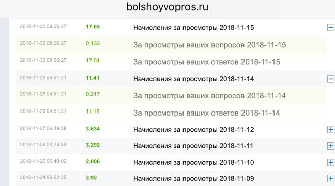 Начнем с того, что на Большом Вопросе прибыль идет «накопительная». То есть чем больше и качественнее у вас база ответов и вопросов, тем больше просмотров и, соответственно, больше прибыль.