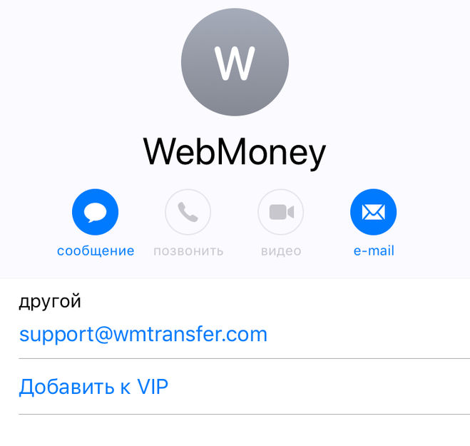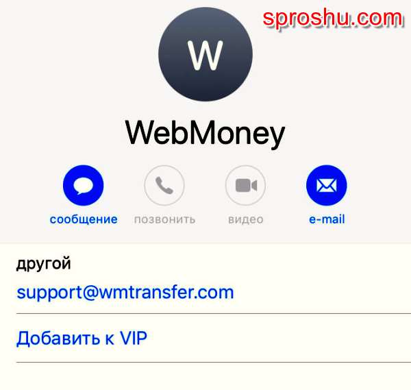 Так, например, выглядит контакт вебмани, который присылает уведомления о любом изменении на моих кошельках: